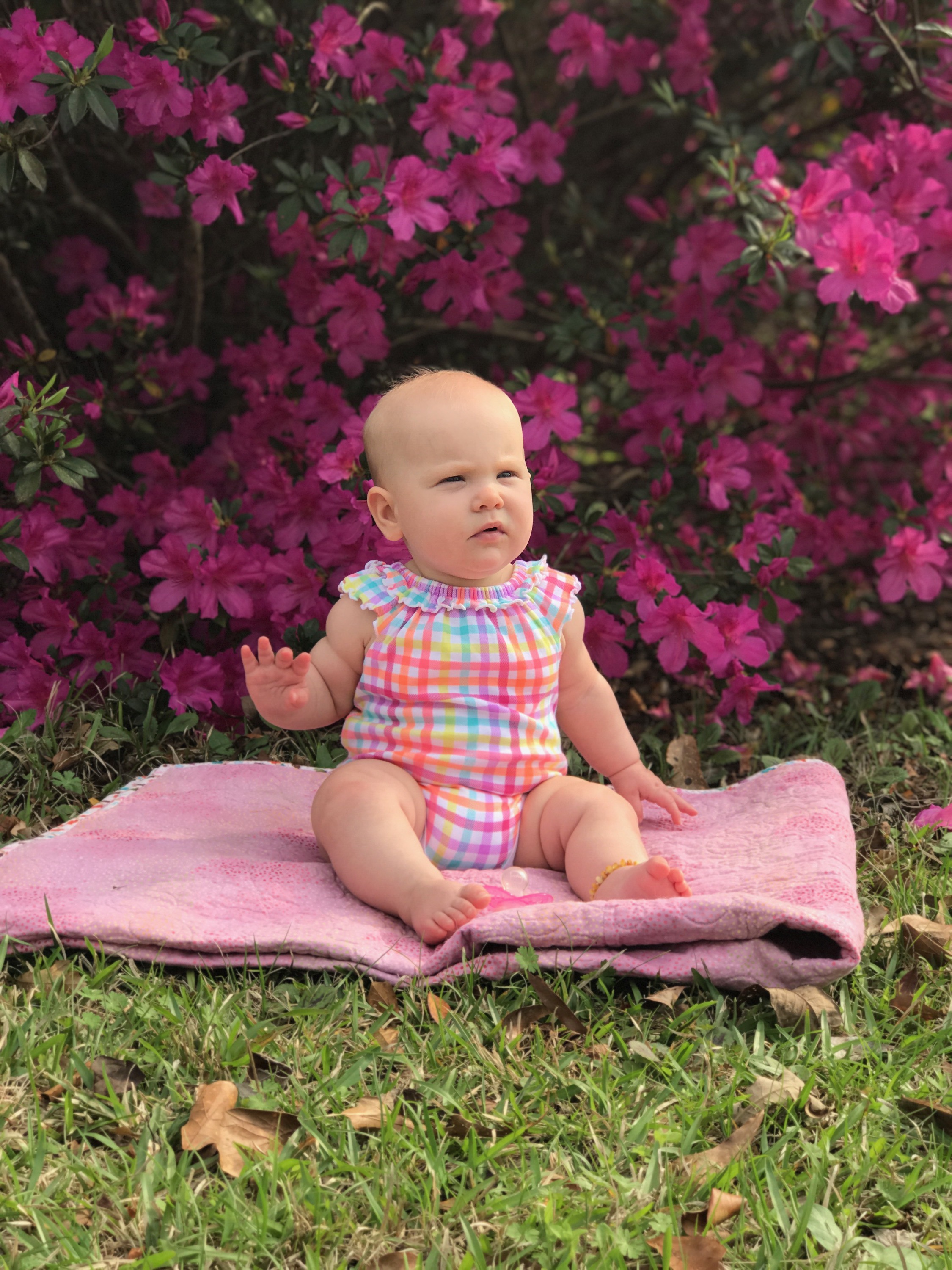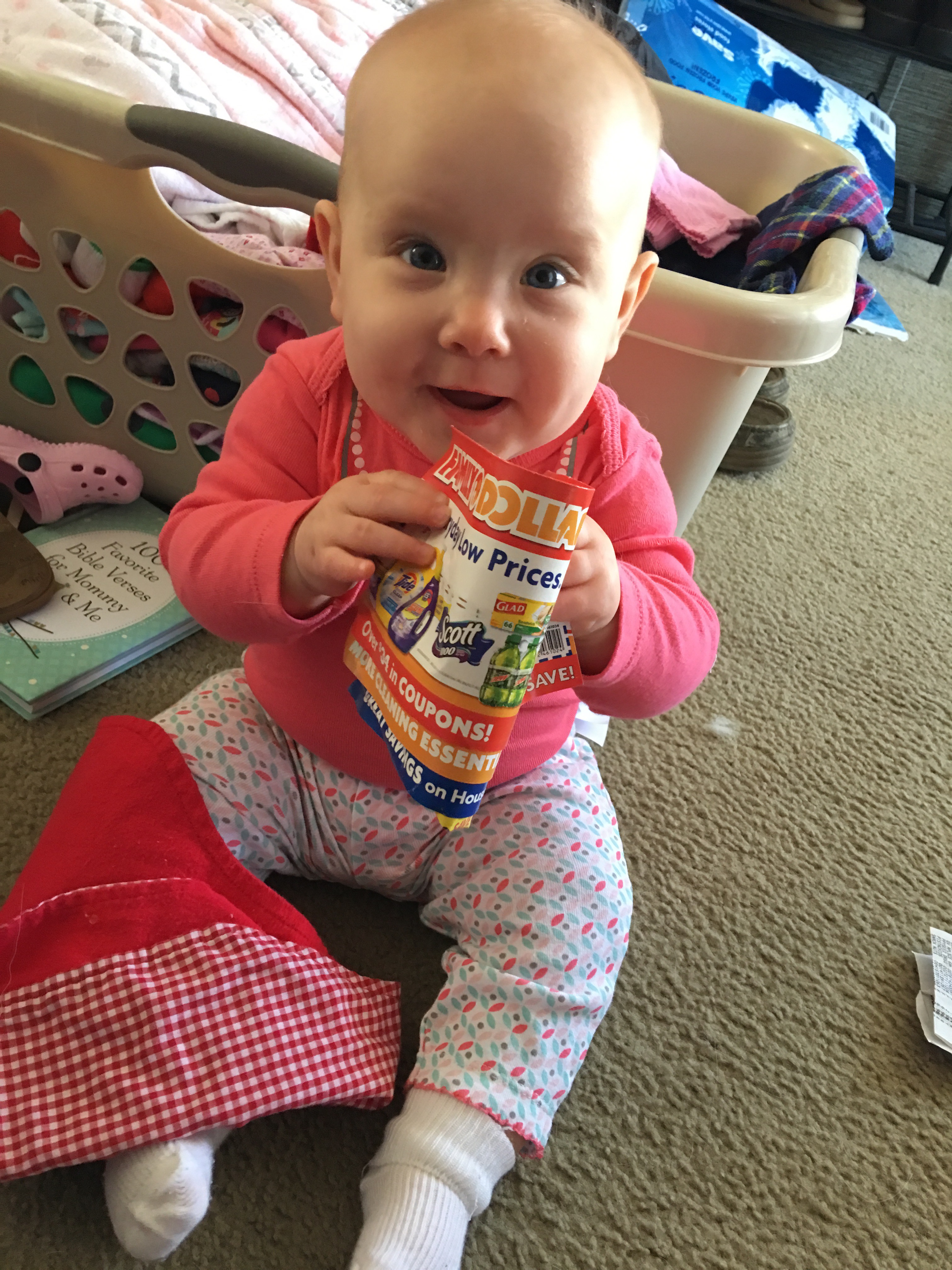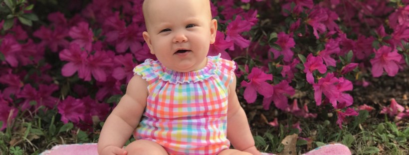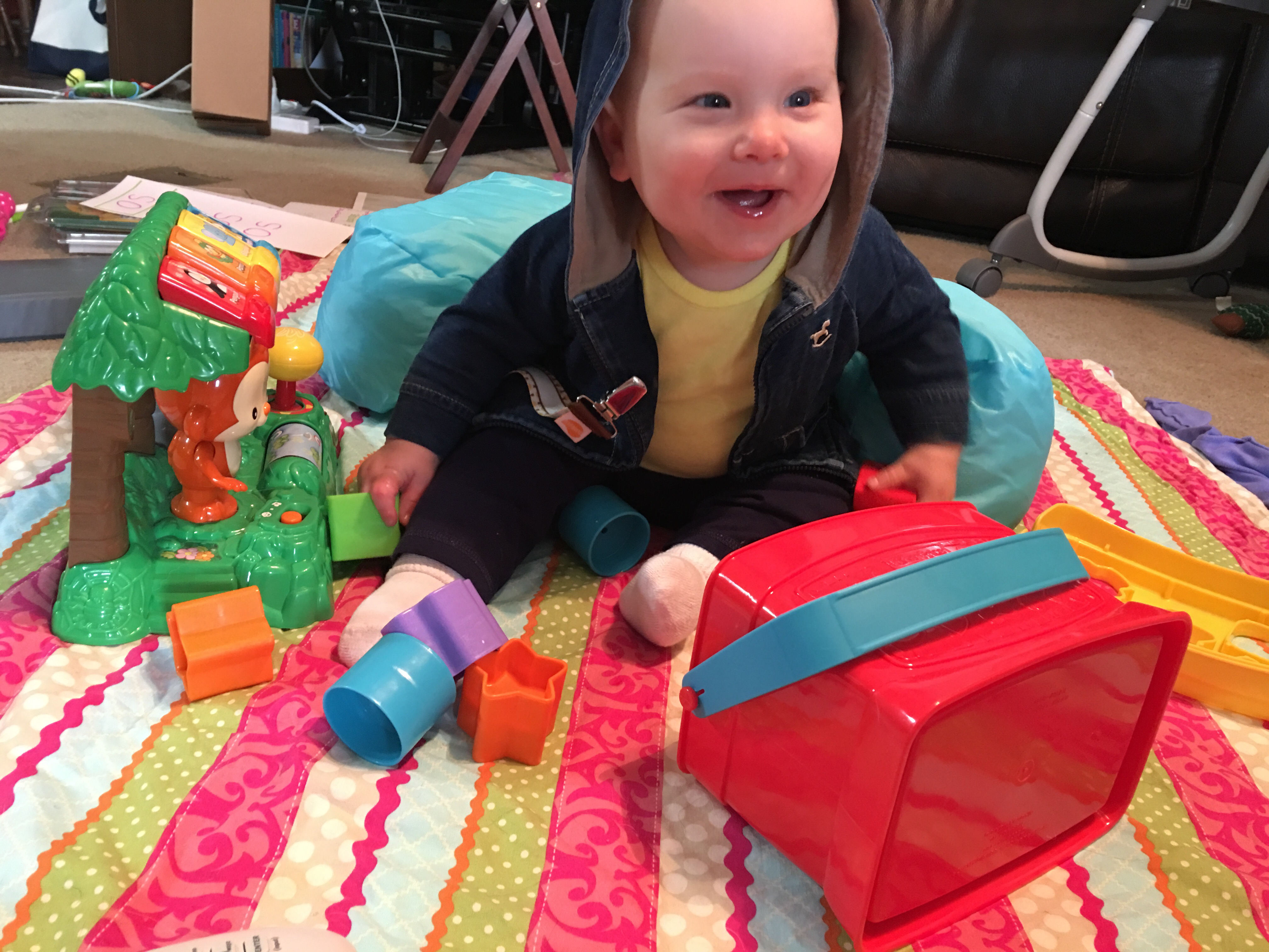 She has mastered drinking from her sippy cup and she loves playing with her toys on the floor, as long as momma isn’t too far away!