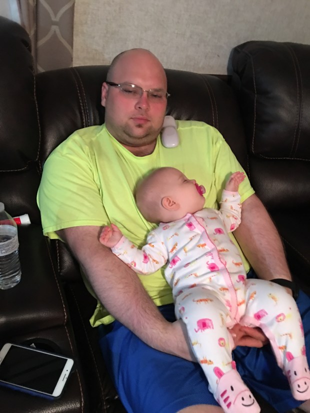 Poor baby wasn’t feeling good at all. Passed out on daddy!